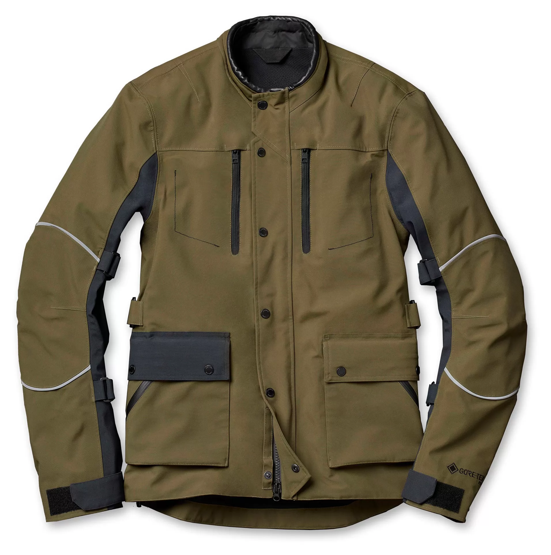 The Divide Motorcycle Jacket is designed for life’s best long-distance adventures when you’re heading off the grid, and you and your bike are going to be on the road for days, weeks, or even months. Made using GORE-TEX Pro fabric and fully seam sealed, the Divide Jacket is both abrasion resistant and waterproof. It’s also surprisingly breathable, thanks to pit zips and zippered back vents that allow air to enter and exit through the jacket, an important feature for rides in which the climate may change a few times. For maximum protection at high-impact areas, the jacket features a double layer of fabric at the shoulders and outer sleeves.