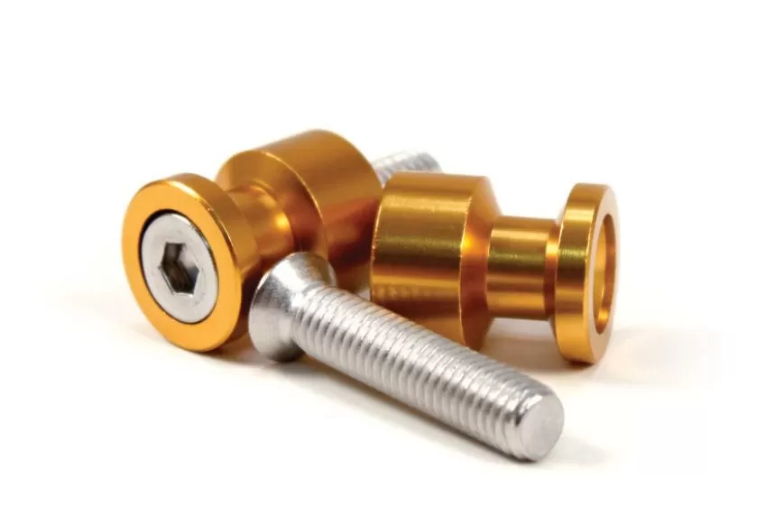 Reduce the weight of your sport bike with the Factory Effex lightweight billet aluminum spools. Easily attaches to the swingarm and provides a secure hold when used with a rear stand. Includes two spools and mounting hardware.