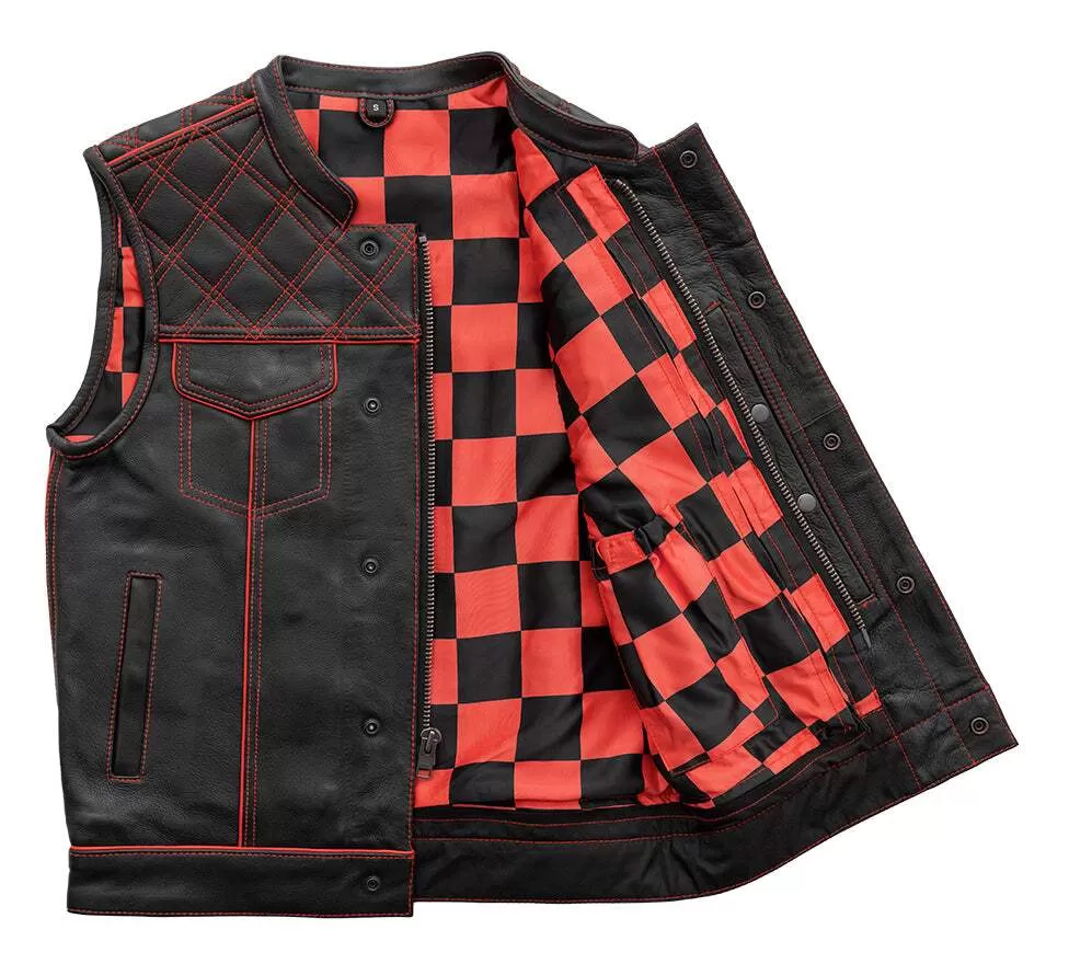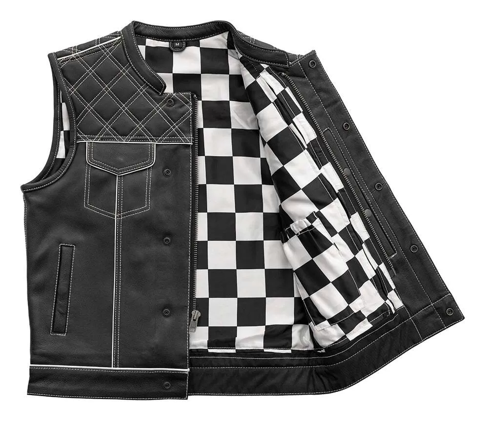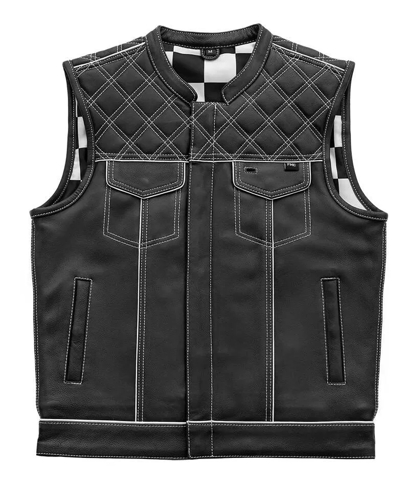 From the colored stitching to the checkered lining, the Checker Vest is as bold and daring as you are! This club style vest has got plenty of pockets so that when you’re ripping around town and doing sick burn outs you don’t lose your lunch money.