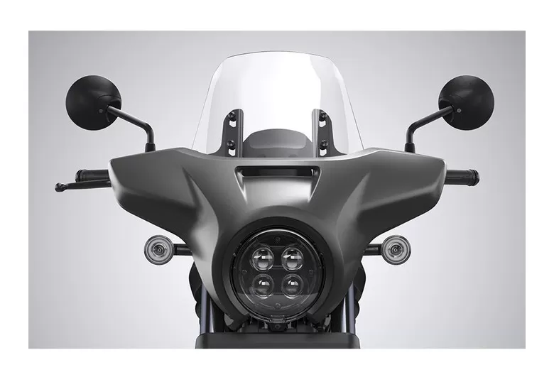 Protect yourself from the elements with this Windscreen Fairing from Honda. This fairing helps redirect air around the rider for comfort on longer rides and is ventilated to reduce negative pressure behind the windscreen. Made from a durable ABS resin and finished in matte black, the Windscreen Fairing for the Rebel 1100 offers more comfort and a stylish look to your ride.