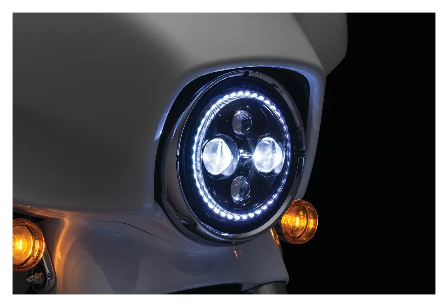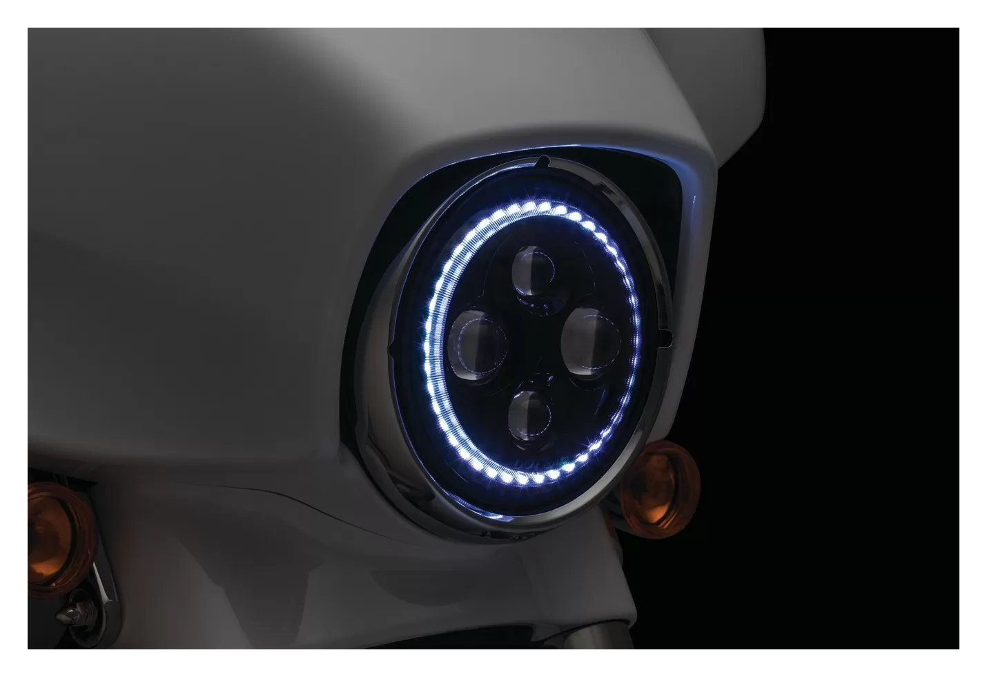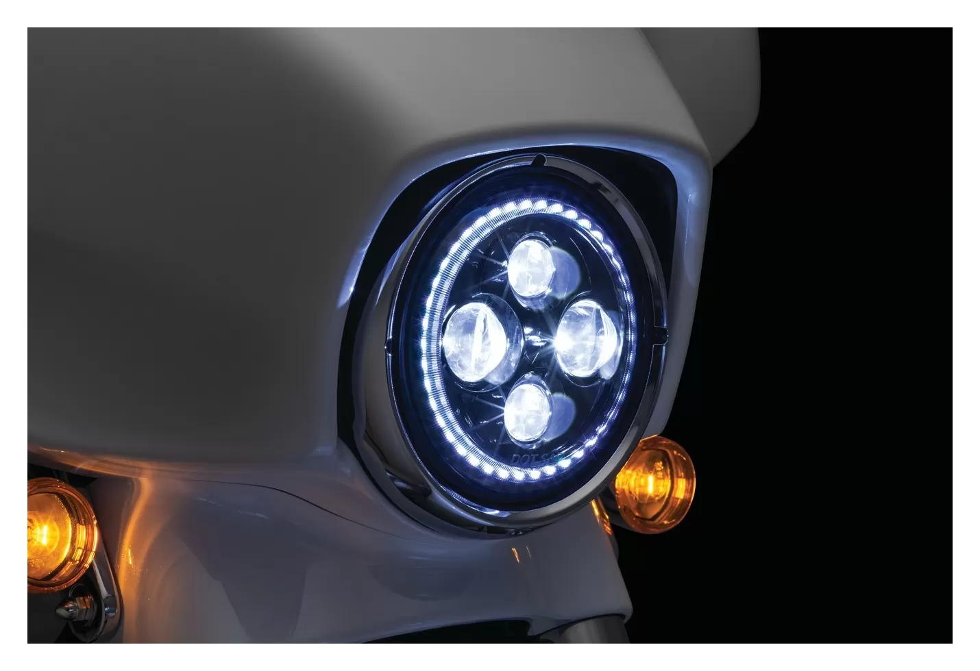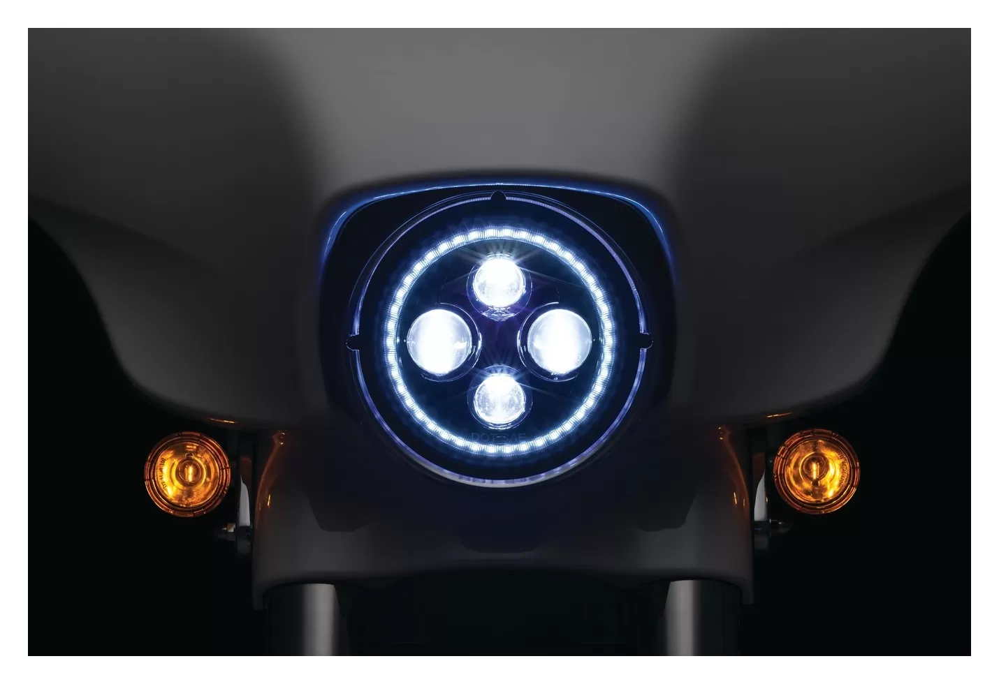 If you’re looking for an ultra high-performance DOT-approved LED headlamp that provides superior visibility and additional wow factor, look no further. Powerful high-output LEDs with integrated outer white halo ring significantly enhance the rider’s nighttime field of vision and all-around visibility. The latest in advanced LED technology offers extremely reduced current draw versus halogen lamps, along with a color temperature rating at 6,000K for optimum brightness. Sealed cast aluminum housings with a non-yellowing hard-coated polycarbonate lens that’s scratch resistant provides unmatched durability.