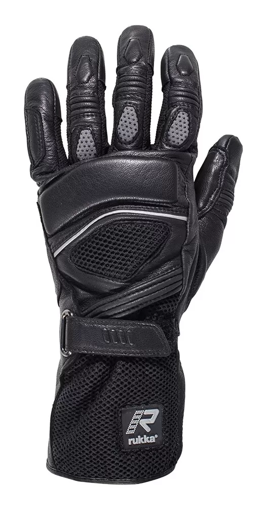 The Rukka AFTL gloves are designed to keep you protected during your hot weather rides. Leather provides abrasion resistance with key areas of ventilation from air stretch mesh and neoprene. A long cuff overlaps with your jacket to reduce the likelihood of exposing skin in a crash. Touchscreen fingertips let you operate your smartphone without removing your gloves.Â