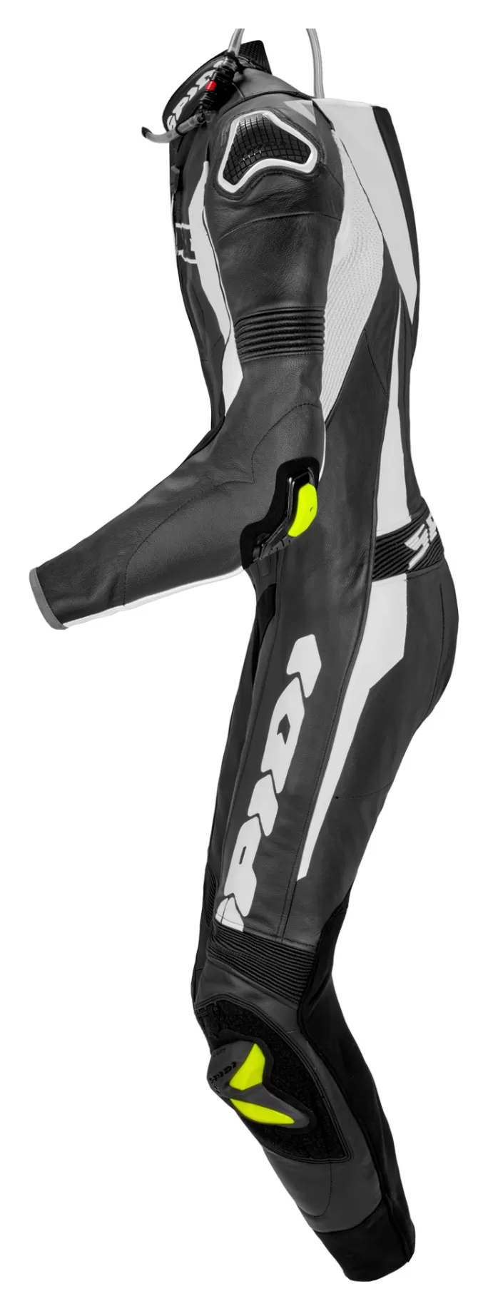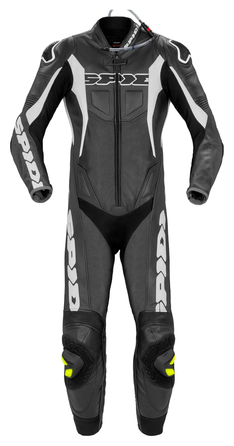 Hot weather track days are a literal breeze with the Spidi Sport Warrior Pro Perforated Race Suit. Perforated cowhide flows air at speed to keep you cooler and dryer than a solid non-perforated suit. A removable mesh liner lets you wash the interior to keep it fresh. Accordion stretch panels at critical zones let you maneuver into the tuck position without binding. Spidi includes CE rated armor at the elbows, shoulders and hips. Add in an optional back and chest protector to complete track impact protection. The speed hump is prepared for a hydration system to stave off dry-mouth during scorching track days.Â