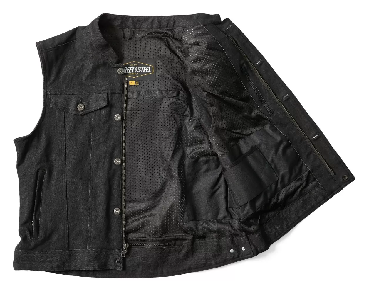 Not a fan of leather? Check out the Redwood 2 Denim Vest. Perfect for clubs thanks to a single back panel that was designed for easy patch attachment. Not only that, it has interior and exterior pockets to hold the necessities.